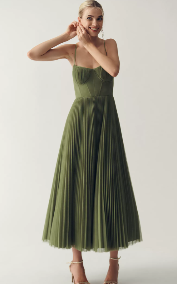 Featuring an elegant sweetheart neckline, alluring corset-inspired bodice, and dynamic all-over pleating, the Hutch Amara Dress pairs its playful silhouette with a modern edge.