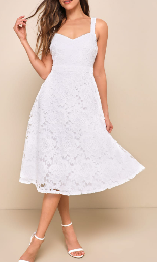 With its romantic lace details, flattering silhouette, and midi length, this dress is elegant without being over the top. Perfect for graduates who want to keep it classic yet modern.
