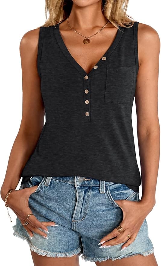 Chic V-neckline with Henley button detail: The signature V-neck button placket adds casual elegance, offering adjustable coverage and versatile styling options.