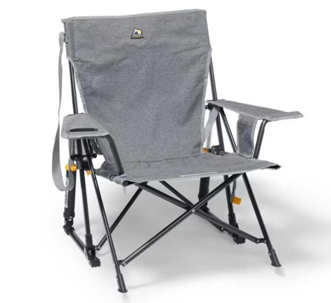 This foldable outdoor rocker combines classic camp-chair design with smooth rocking motion for next-level comfort. It features a high back, padded armrests, and a built-in cupholder—all packed into a travel-friendly design.